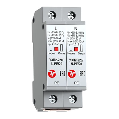 УЗП2-220К/LN-PE/20 Устройство защиты класса II электрооборудования распределительных сетей 220 (230) В AC от импульсных перенапряжений, комплект